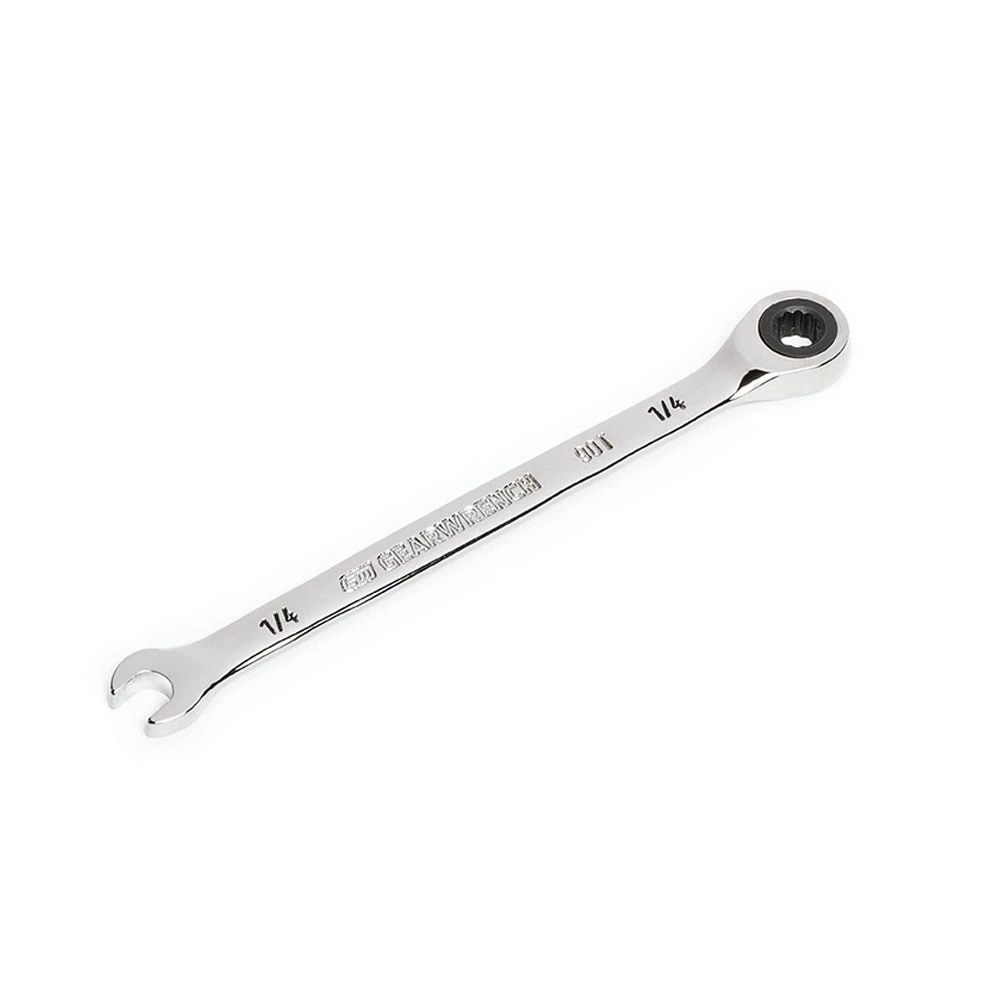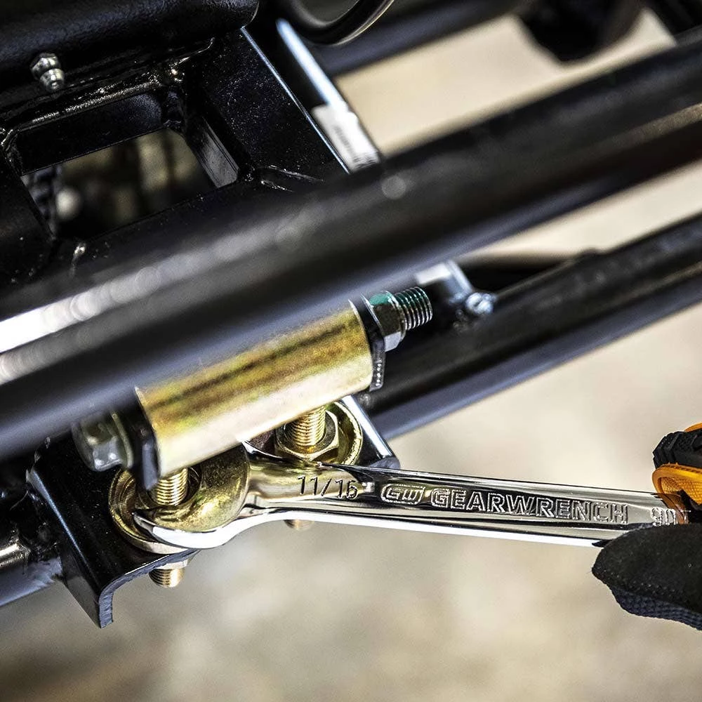 - 90-tooth ratcheting box end delivers a 4° swing arc to turn a fastener in tight spaces