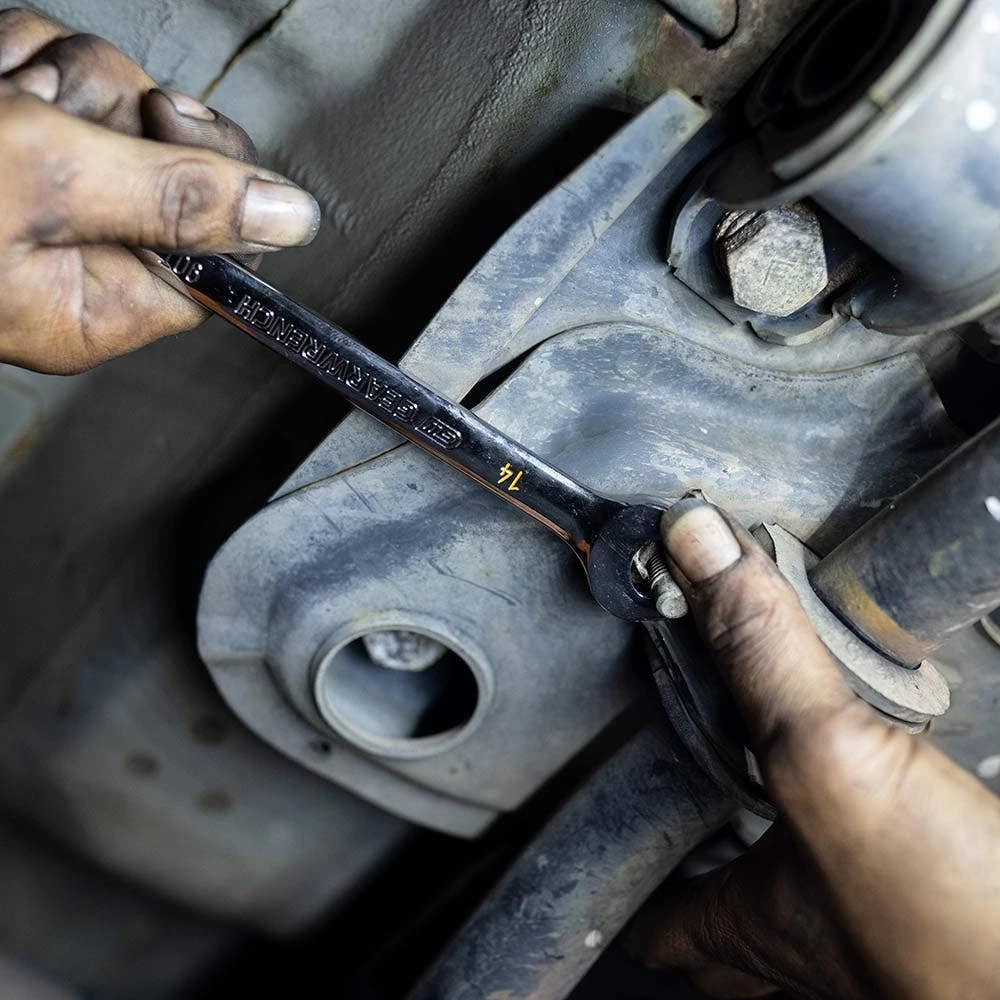 - 90-tooth ratcheting box end delivers a 4° swing arc to turn a fastener in tight spaces