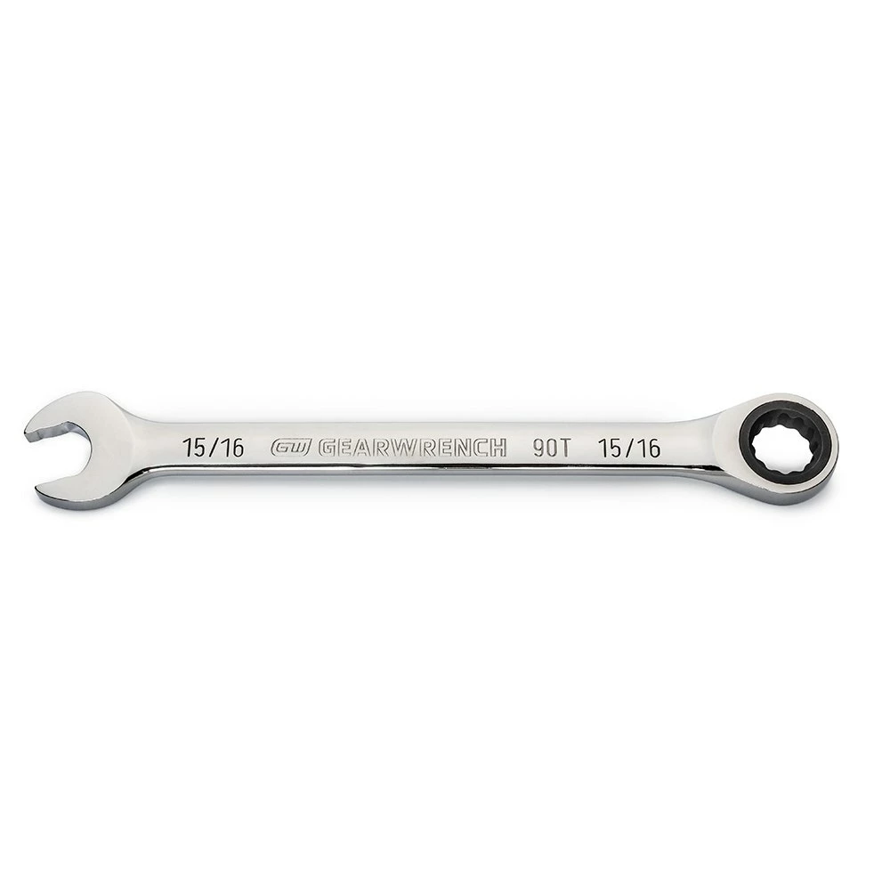 - 90-tooth ratcheting box end delivers a 4° swing arc to turn a fastener in tight spaces