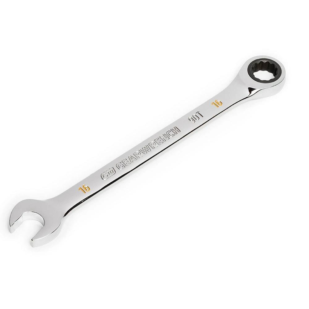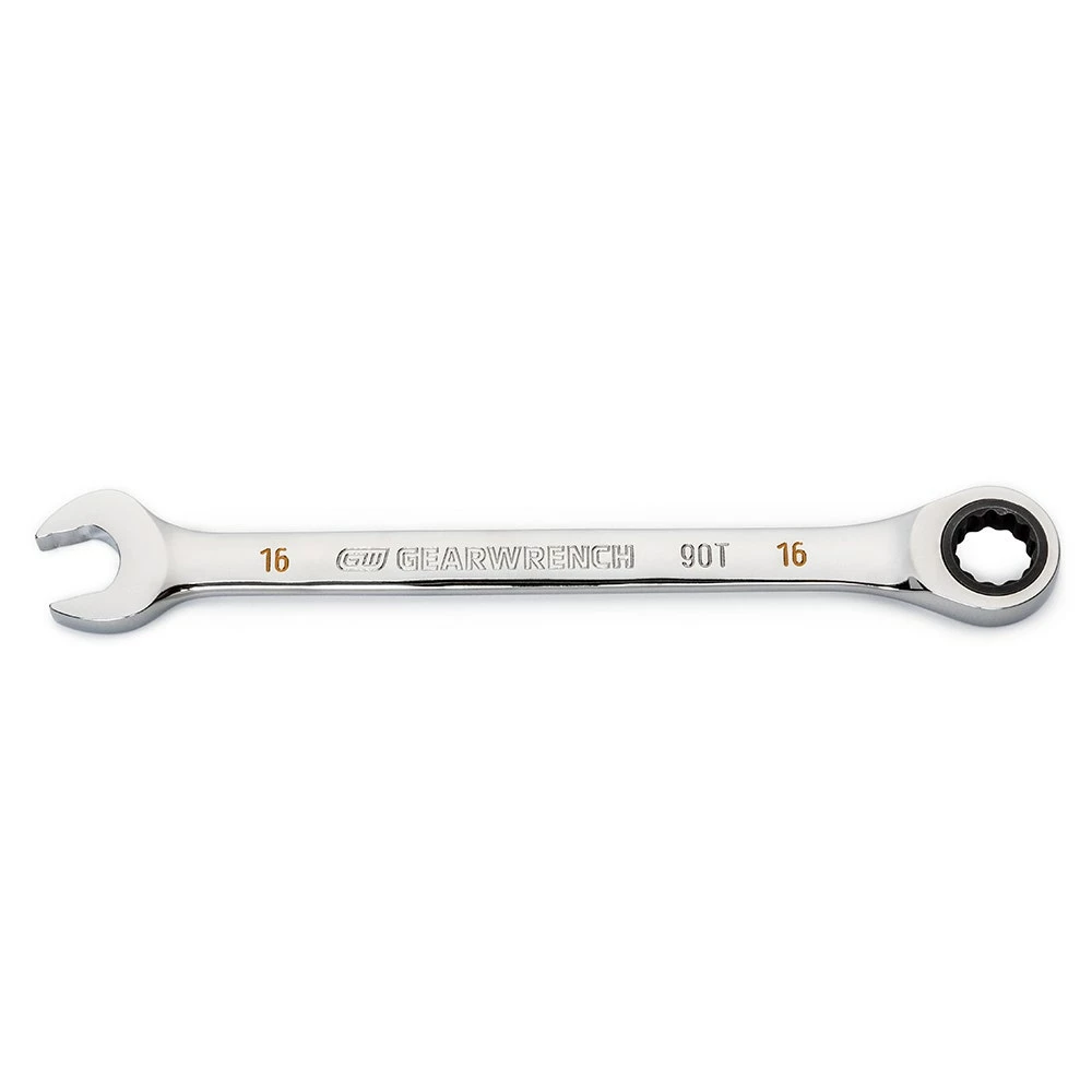 - 90-tooth ratcheting box end delivers a 4° swing arc to turn a fastener in tight spaces