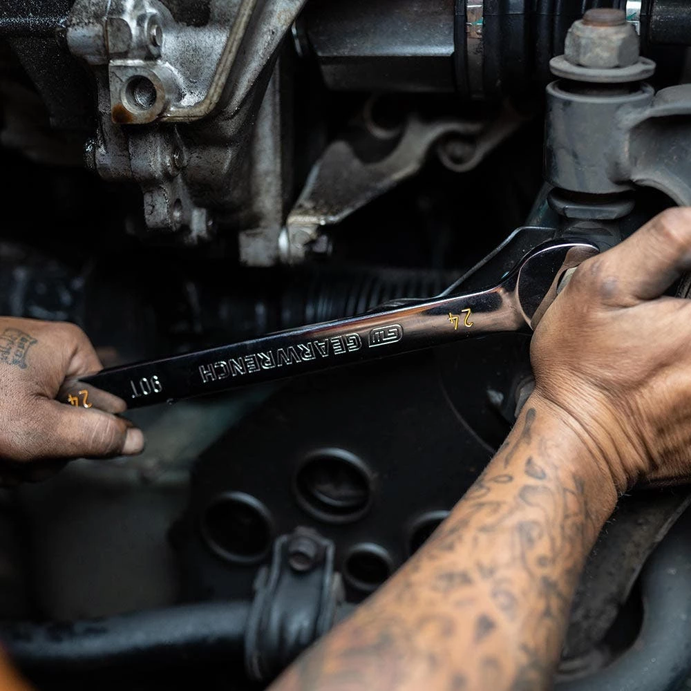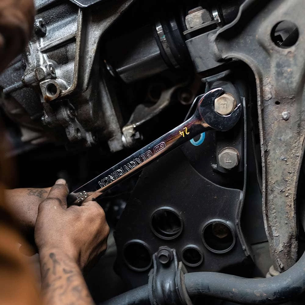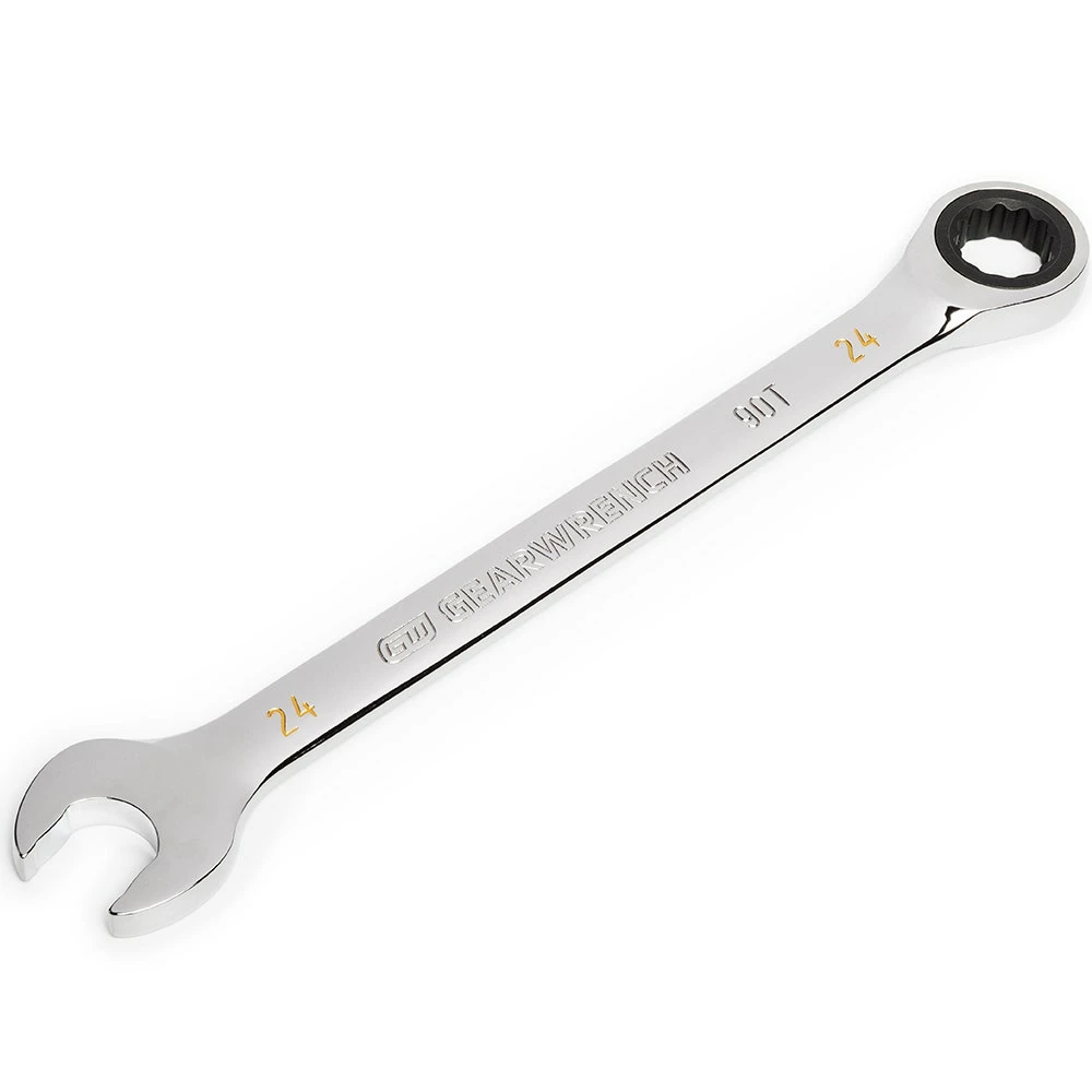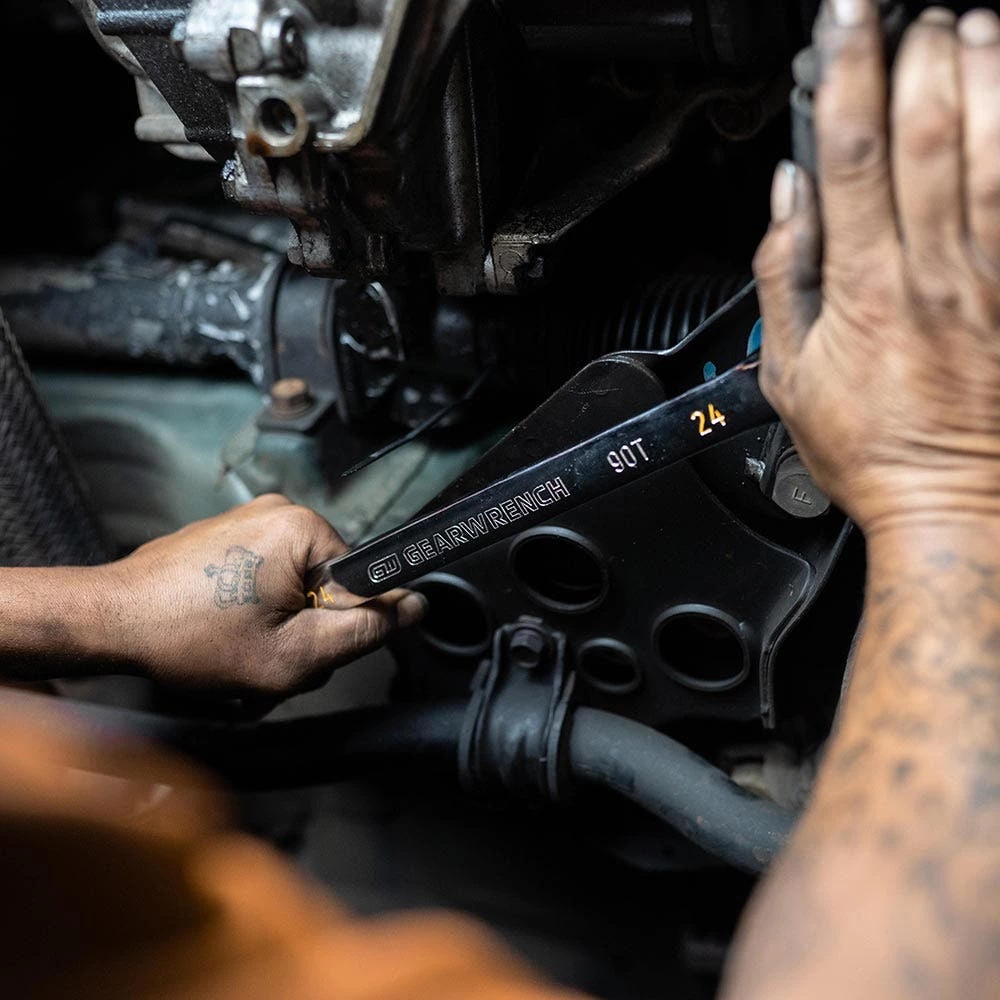 - 90-tooth ratcheting box end delivers a 4° swing arc to turn a fastener in tight spaces