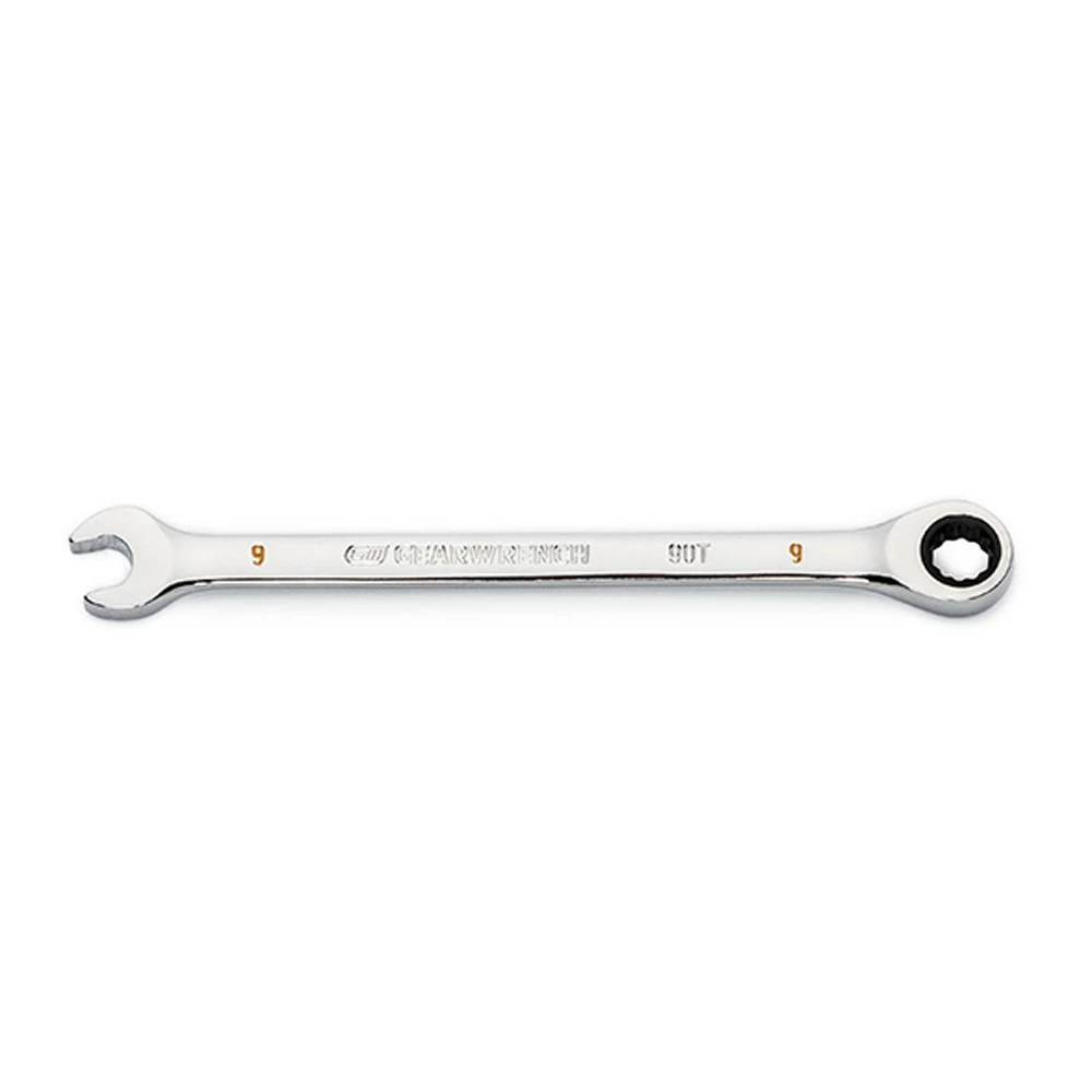 - 90-tooth ratcheting box end delivers a 4° swing arc to turn a fastener in tight spaces