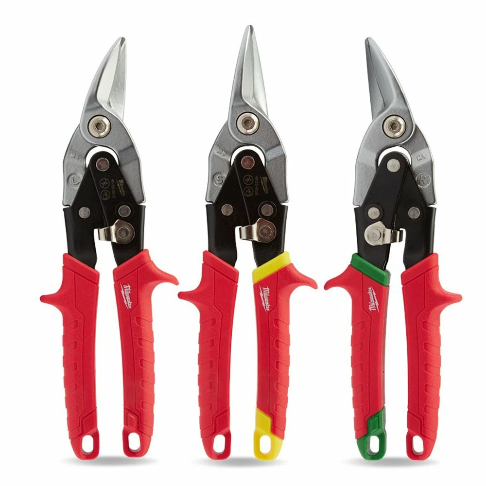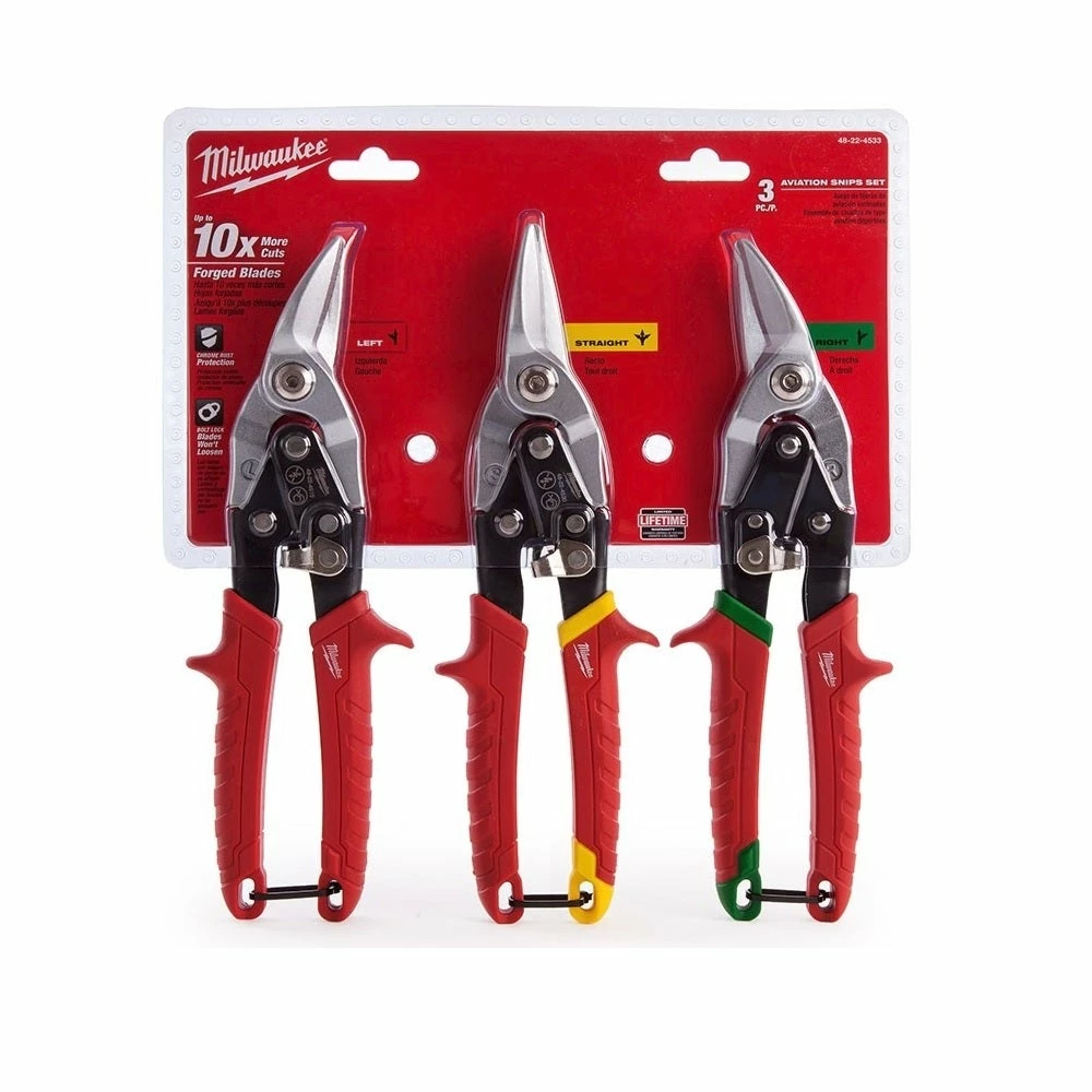 Milwaukee® Aviation Snips are built for long life and durability. Forged blades deliver up to 10X more cuts than cast blades. Bolt Lock ensures the blades won’t loosen and chrome plating provides rust protection. The flush pivot bolt won’t hang up on material for easy use. The metal lock secures the tool for storage and is easily operated with one hand. The 3pc set includes Left, Right, and Straight Aviation Snips.
