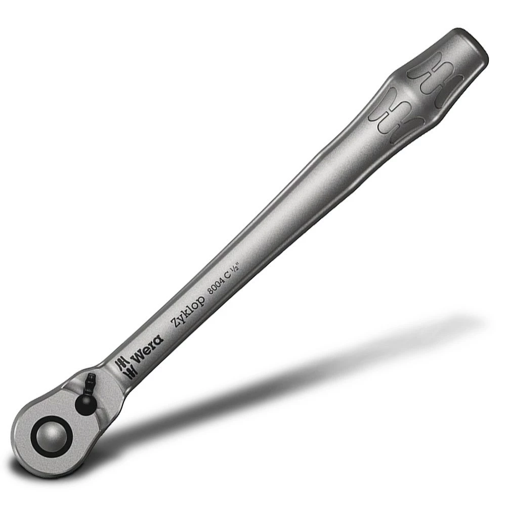 Zyklop Metal ratchet with switchover lever. Slim design for work in even very confined spaces. The 72 fine-pitched teeth allow a small return angle of 5°. Comes with a switchover lever for convenient direction change and secure socket locking function. Forged, full metal ratchet (chrome-molybdenum steel) for particularly high robustness and long service life.